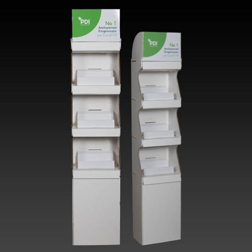 - Επιδαπέδιο χάρτινο σταντ με βάσεις από plexiglass στα ράφια.